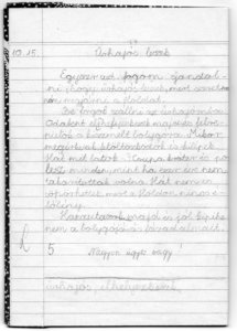 Most közkinccsé teszek egyet, amit még alig tízévesen írtam, és hogy szó ne érhesse a ház elejét, íme az ominózus füzetlap: